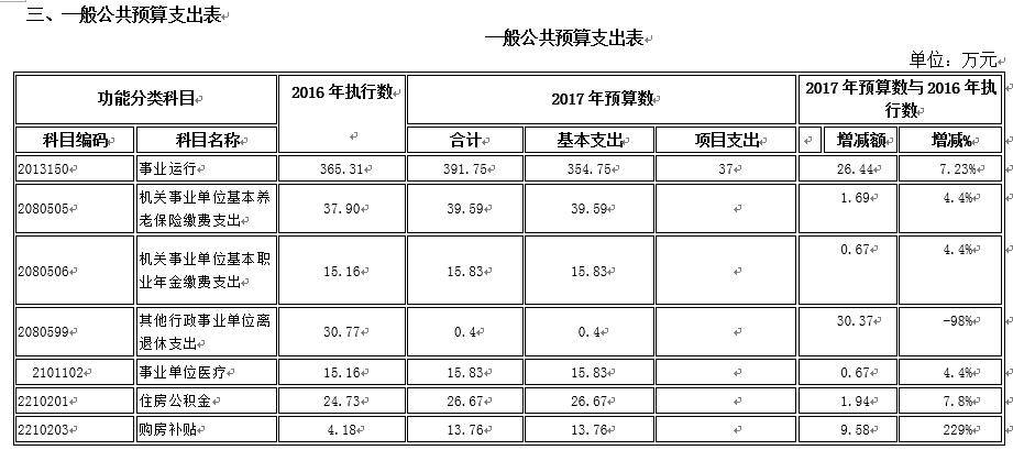 2017年,事業(yè)單位的機(jī)關(guān)運(yùn)行經(jīng)費(fèi)財(cái)政撥款預(yù)算 10.27 萬元,比2016年預(yù)算增加0 萬元。實(shí)際執(zhí)行為10.63萬元,增加3.5%。
