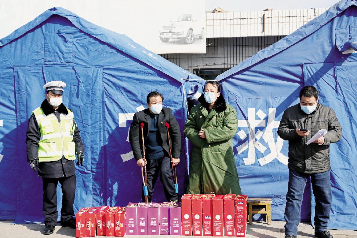 倪巖(左二)自掏腰包慰問抗疫一線的工作人員?