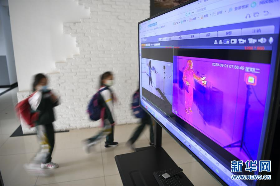 9月1日,銀川市興慶區(qū)回民第二小學(xué)學(xué)生通過體溫監(jiān)測設(shè)備。當(dāng)日,寧夏銀川市各中小學(xué)、幼兒園正式迎來新學(xué)期。 新華社記者 王鵬 攝