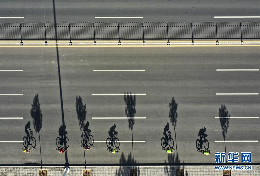 在寧夏銀川,顧大我(右二)與鐵人三項(xiàng)俱樂(lè)部的隊(duì)友們一起進(jìn)行騎行訓(xùn)練(7月26日攝)。 新華社記者 馮開(kāi)華 攝