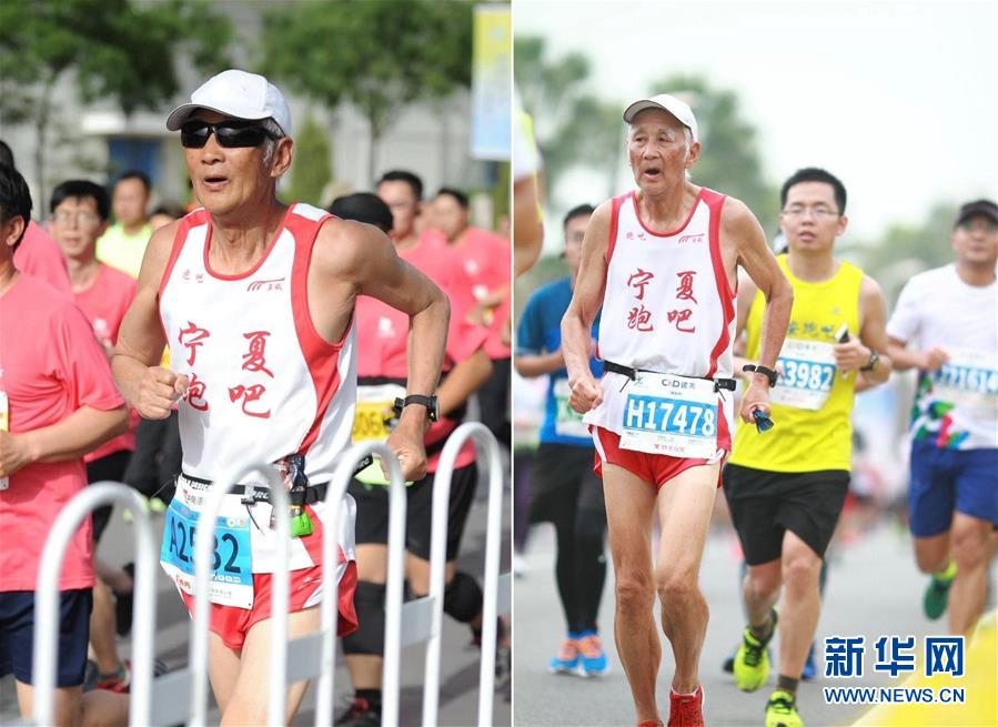 【拼版照片】左圖為顧大我在2019銀川國(guó)際馬拉松比賽中(2019年5月26日攝);右圖為顧大我在2020廈門(mén)馬拉松比賽中(20201月5日攝)。 新華社發(fā)(受訪者供圖)