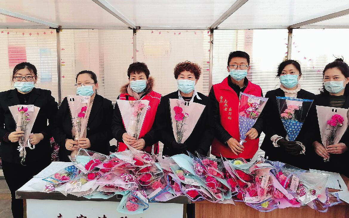 長(zhǎng)城花園社區(qū)聯(lián)合轄區(qū)各物業(yè)公司為居民免費(fèi)送鮮花,傳遞新年美好祝愿。