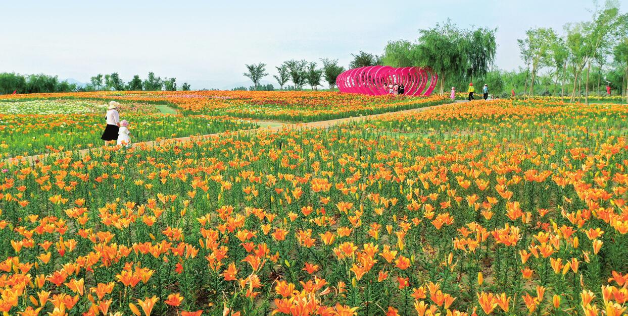 ——艷艷百合為民開。石嘴山市自然資源局的孫志丹帶領(lǐng)記者來到大武口區(qū)星海鎮(zhèn)星海湖畔的網(wǎng)紅打卡地。數(shù)百畝的百合花五顏六色,競相開放、格外鮮艷,游人如織、競相嬉戲,花香隨風(fēng)四溢沁人心脾,使人流連忘返。孫志丹說:“這里曾是一片鹽堿地和垃圾場,為改善生態(tài)環(huán)境給周邊6萬多名搬遷移民提供休閑地,石嘴山市將這片鹽堿地生態(tài)修復(fù)治理列入了全市重點(diǎn)工程項(xiàng)目?!鄙澈呛:颠B通(星海鎮(zhèn)流域段)綜合治理工程是集生態(tài)修復(fù)治理、市民休閑公園、扶貧產(chǎn)業(yè)試點(diǎn)與就業(yè)、生態(tài)旅游等多重功能為一體的綜合治理項(xiàng)目,極大地改善了沙湖——星海湖水系連通區(qū)域生態(tài)環(huán)境,也為典農(nóng)河流域及黃河沿線水域治理發(fā)揮了積極作用。