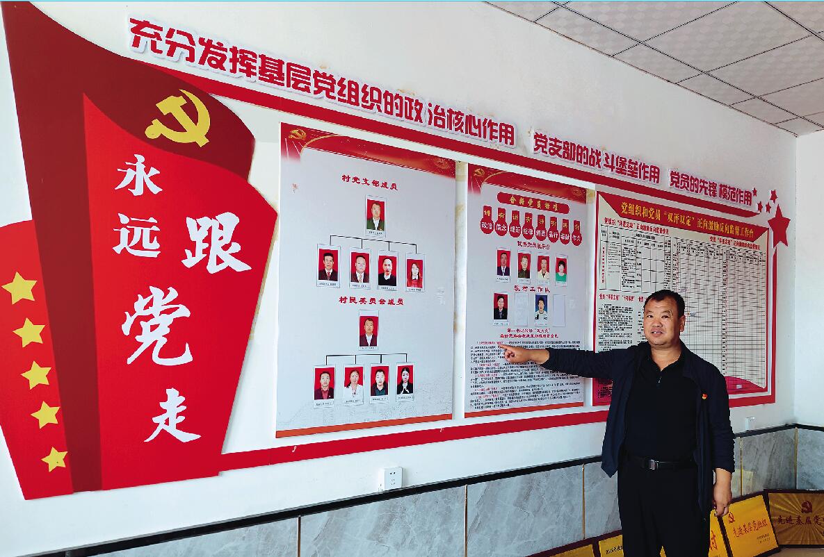 伍文余給記者介紹黨支部成員以及村“兩委”班子成員職責分工情況