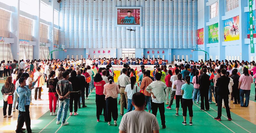 2021年7月1日,彭陽(yáng)縣各界群眾在縣體育館內(nèi)集中收看習(xí)近平總書記“七一”重要講話。 楊衛(wèi)民/攝