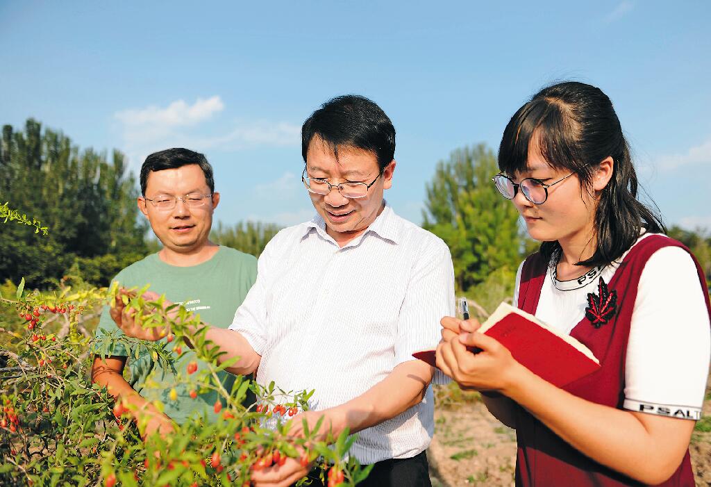 作為一名共產(chǎn)黨員、一名基層科研人員,曹有龍將帶領(lǐng)團隊深入群眾之中,讓科研成果落地生根,讓老百姓真真切切分享到科技成果轉(zhuǎn)化的紅利,真真切切感受到黨的恩情?!拔覀冞€將繼續(xù)通過科技創(chuàng)新、研發(fā),解決枸杞產(chǎn)業(yè)發(fā)展中的瓶頸問題,將枸杞種到鹽堿地、深荒地、戈壁灘,以枸杞產(chǎn)業(yè)發(fā)展為契機,解決西部地區(qū)生態(tài)脆弱和剩余勞動力特別是婦女的就業(yè)問題?!安苡旋堈f。