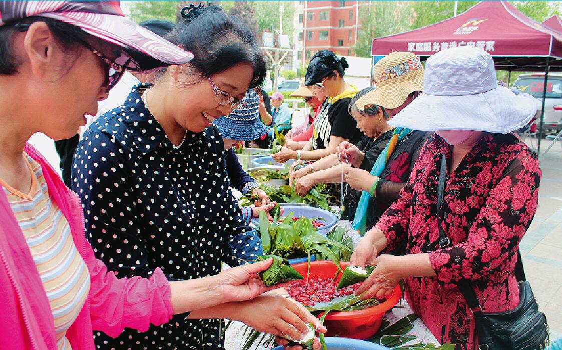 金鳳區(qū)湖畔嘉苑社區(qū)組織居民包粽子,歡度端午節(jié)。