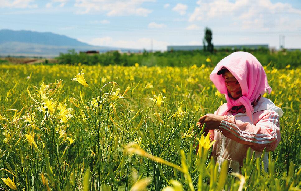 紅寺堡區(qū)持續(xù)優(yōu)化產業(yè)發(fā)展布局,黃花菜產業(yè)規(guī)模不斷壯大。圖為柳泉鄉(xiāng)黃花菜種植基地。