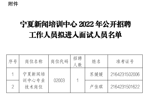 附件:寧夏新聞培訓(xùn)中心2022年公開招聘工作人員擬進(jìn)入面試人員名單