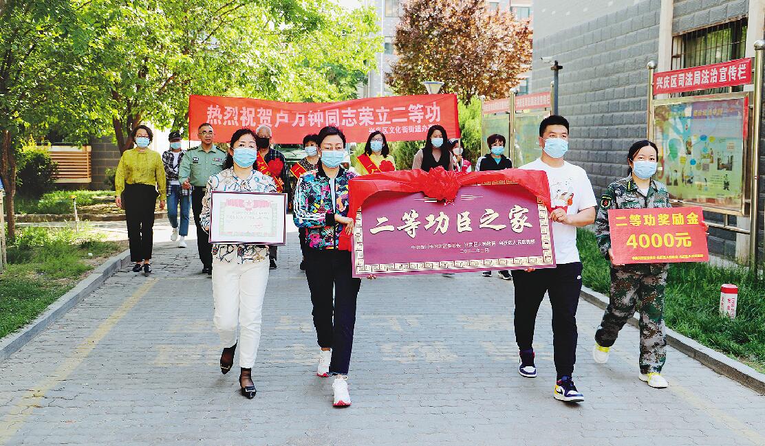 銀川市興慶區(qū)退役軍人事務(wù)局聯(lián)合人武部到榮立二等功的現(xiàn)役軍人盧萬鐘家中,為其家屬送上喜報和慰問金。