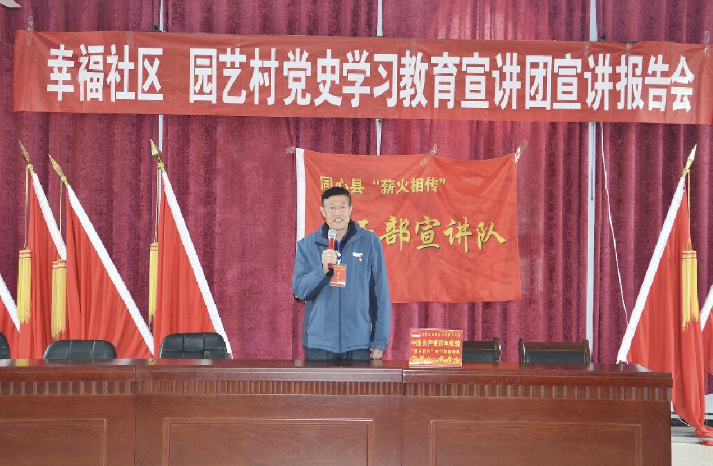 “薪火相傳”宣講團(tuán)成立以來(lái),拜孝忠和他的“老伙伴們”雖年過(guò)花甲,但依舊不忘初心,堅(jiān)持開(kāi)展分眾化、大眾化、互動(dòng)化宣講100多場(chǎng)次,聽(tīng)眾近4萬(wàn)人次。通過(guò)翻閱同心縣志和大量史志資料,書(shū)寫背誦了近30萬(wàn)字的中國(guó)共產(chǎn)黨黨史講義,結(jié)合自身經(jīng)歷,拜孝忠深情講述黨的革命故事,宣講黨的百年光輝歷史20多場(chǎng)次、受眾6000余人次。