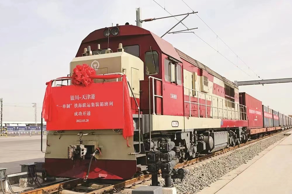 2022年3月28日,寧夏首列“一單制”鐵海聯(lián)運(yùn)集裝箱班列開往天津港。這意味著寧夏企業(yè)出口貨運(yùn)的“出??凇睆奶旖蚯耙频綄幭?,企業(yè)可以在家門口“一單到底”,經(jīng)天津港直接下海發(fā)往出口國目的地。
