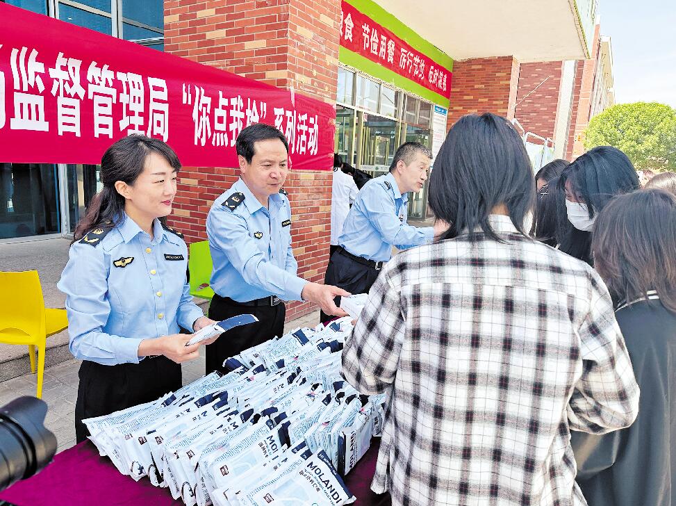 自治區(qū)市場(chǎng)監(jiān)管廳工作人員在寧夏職業(yè)技術(shù)學(xué)院開展食品安全科普宣傳。