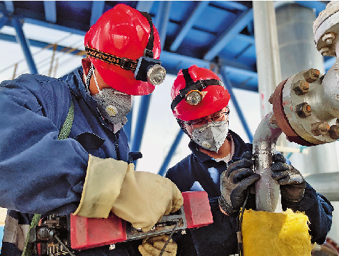 寧夏特種設(shè)備檢驗(yàn)檢測院工作人員對壓力容器進(jìn)行安全檢測。