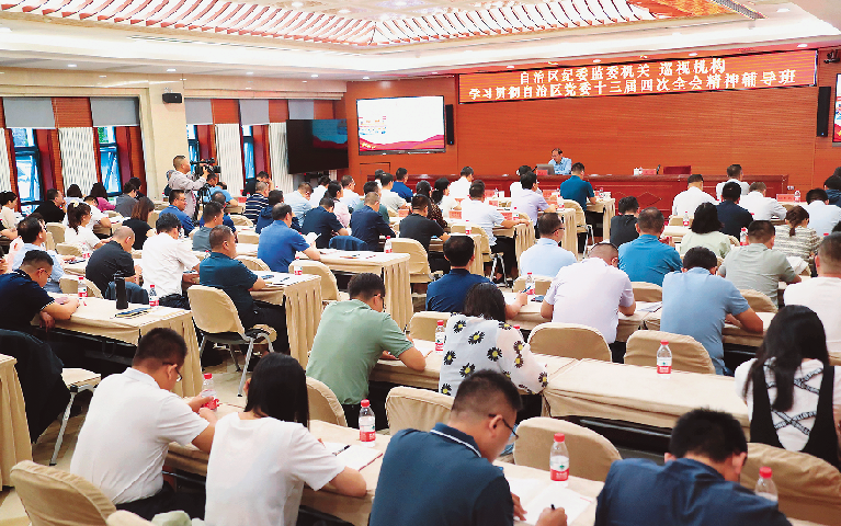 舉辦學習貫徹自治區(qū)黨委十三屆四次全會精神輔導班,邀請有關(guān)專家對“1+37+8”系列文件進行解讀輔導。