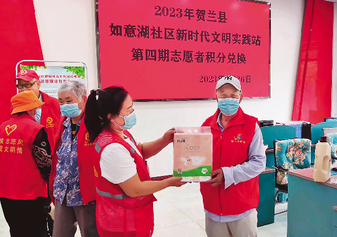 志愿服務是現(xiàn)代社會文明進步的重要標志之一,是加強精神文明建設、培育和踐行社會主義核心價值觀的重要內(nèi)容。自2019年8月新時代文明實踐工作全面啟動以來,賀蘭縣積極探索,創(chuàng)新實施“積分制”管理模式,賦能基層治理和鄉(xiāng)村振興,使廣大群眾成為鄉(xiāng)風文明與鄉(xiāng)村治理的參與者、受益者和評判者。目前,全縣1個新時代文明實踐中心、7個新時代文明實踐所、82個新時代文明實踐站全部建成“積分超市”,覆蓋率達到100%。