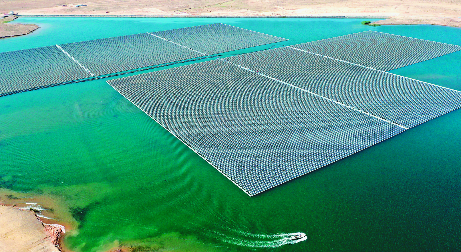 靈武市能源產(chǎn)業(yè)形成風(fēng)光火儲多能互補格局。圖為國能寧東第二發(fā)電有限公司西湖一、二、三、四期漂浮分布式光伏發(fā)電項目。