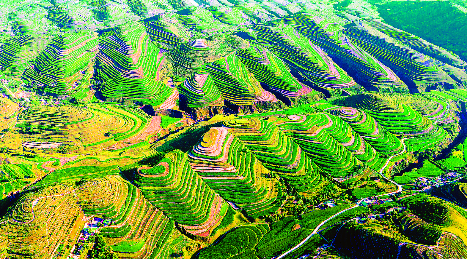 寧夏西海固地區(qū)“碧波蕩漾”的梯田。