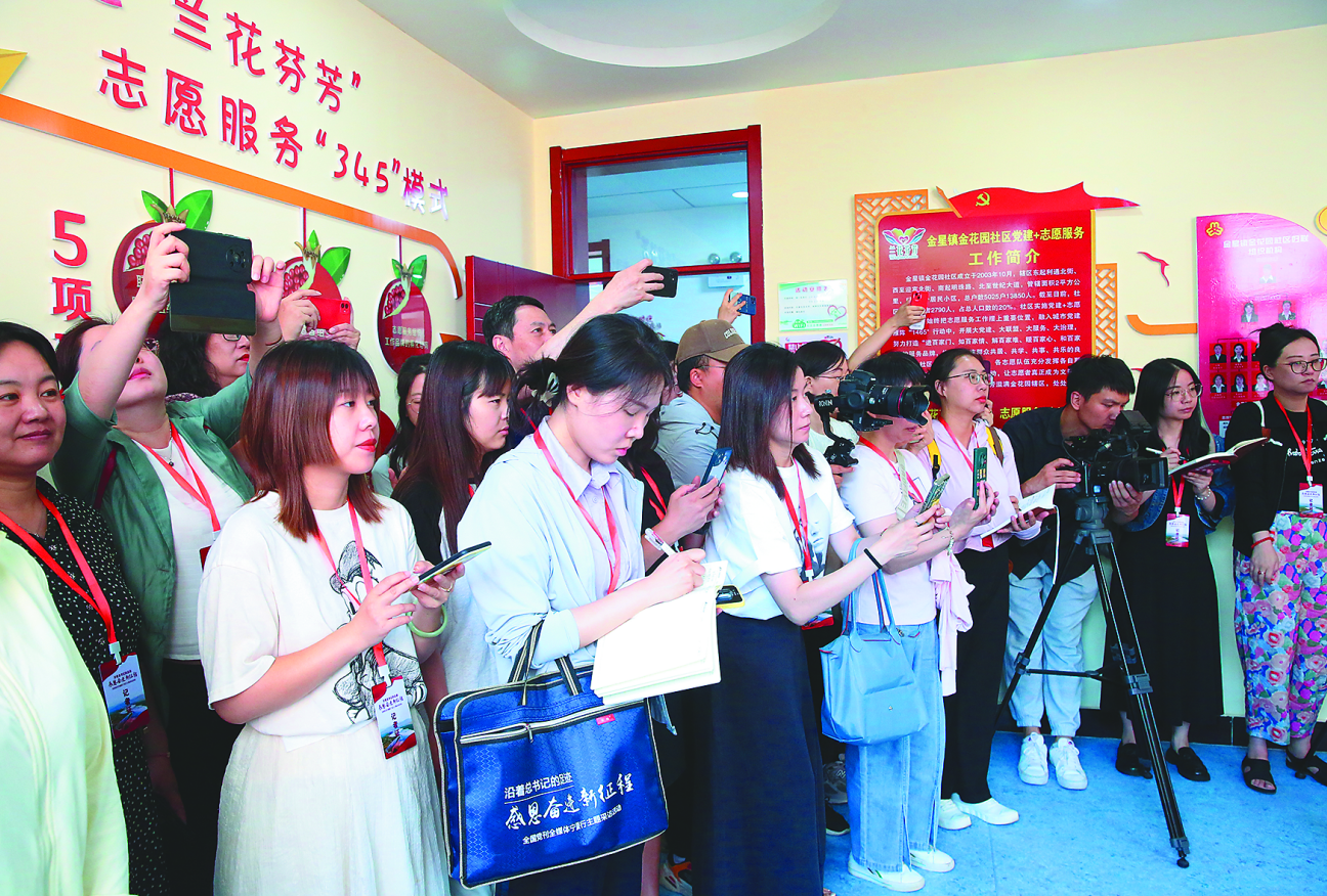 全國黨刊全媒體記者在吳忠市利通區(qū)金星鎮(zhèn)金花園社區(qū)采訪。