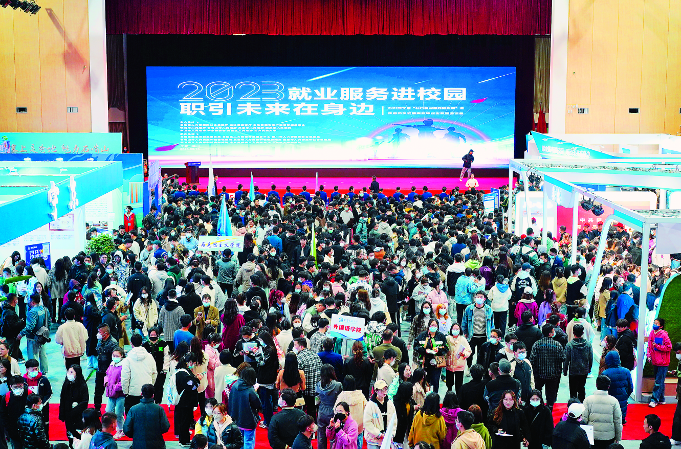 2023年寧夏“公共就業(yè)服務(wù)進(jìn)校園”活動(dòng)啟動(dòng)儀式暨高校畢業(yè)生就業(yè)洽談會(huì)在北方民族大學(xué)啟幕。 自治區(qū)人力資源和社會(huì)保障廳供圖
