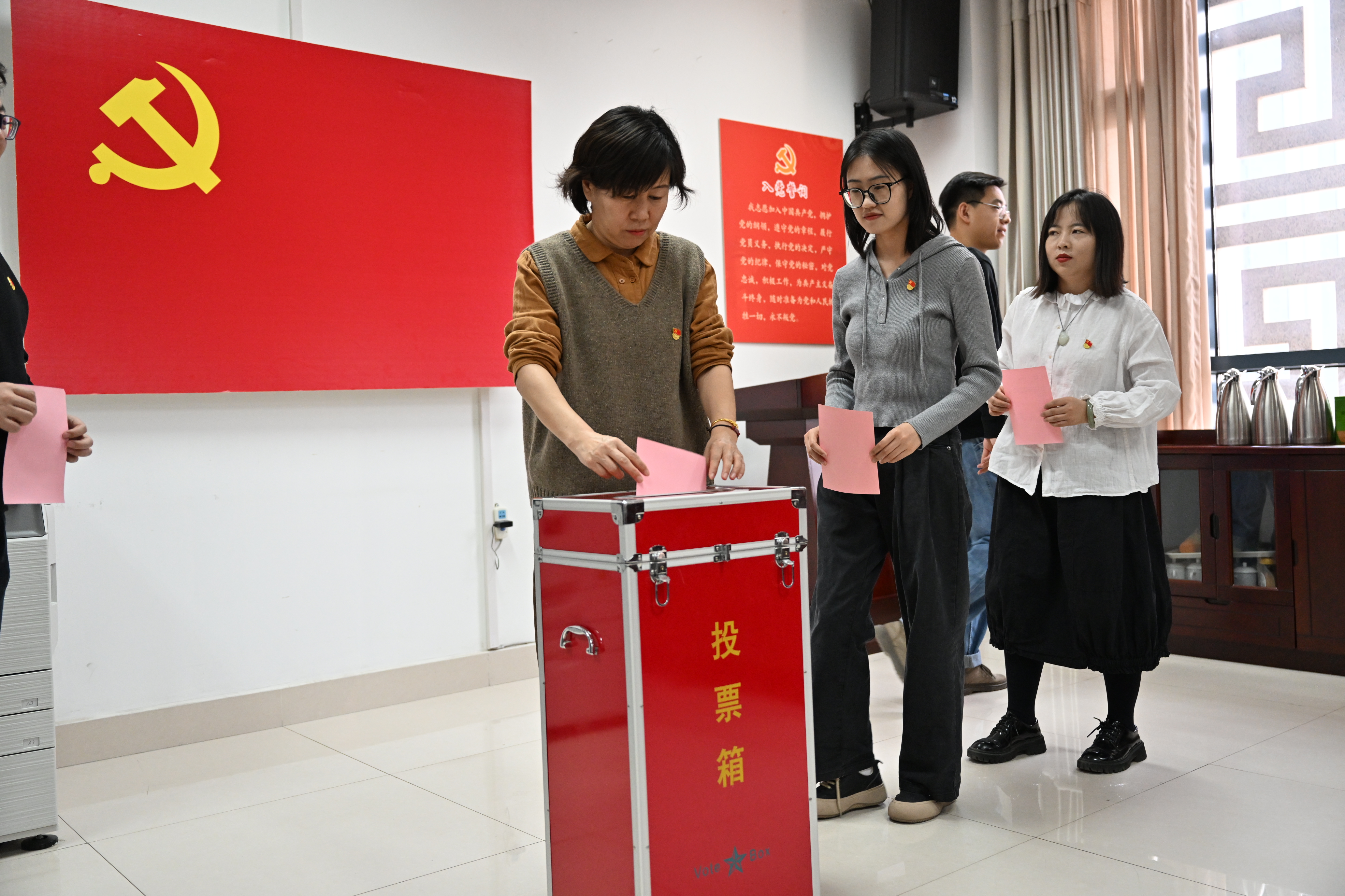 按照《中國共產(chǎn)黨章程》和《中國共產(chǎn)黨基層組織選舉工作條例》的程序和要求,大會表決通過了上屆黨總支工作報告、黨費收繳、使用和管理情況的報告、大會選舉辦法、候選人名單以及總監(jiān)票人、監(jiān)票人、計票人名單。按照選舉程序,第一階段,與會黨員以無記名投票方式差額選舉產(chǎn)生了新一屆總支委員。第二階段,從當(dāng)選的總支委員中等額選舉產(chǎn)生總支書記、副書記。會議堅持公開、透明的原則,嚴(yán)肅有效,得到全體黨員的一致認(rèn)可。
