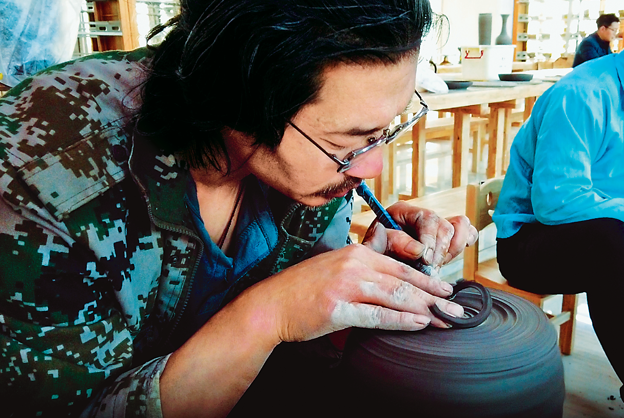 傳承和守護(hù)好中華優(yōu)秀傳統(tǒng)文化,著力推動(dòng)文化產(chǎn)業(yè)繁榮發(fā)展。圖為制陶師傅在寧夏大學(xué)博雅書(shū)院勞動(dòng)教育實(shí)踐教學(xué)中心陶藝教學(xué)實(shí)踐基地制作黃河古瓷?!?bào)?攝