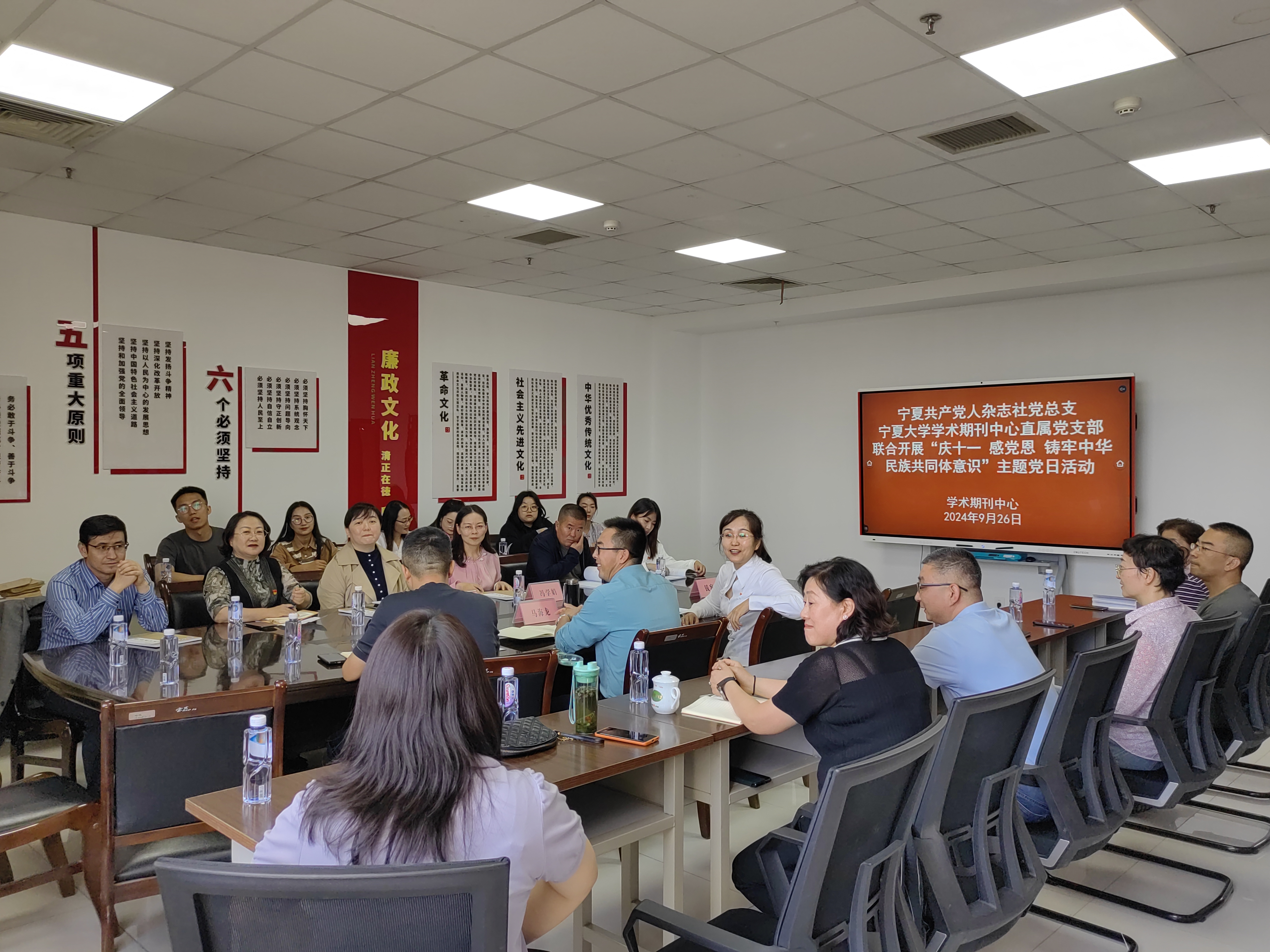 為慶祝中華人民共和國(guó)成立75周年,2024年9月26日下午,寧夏共產(chǎn)黨人雜志社黨總支、寧夏大學(xué)學(xué)術(shù)期刊中心直屬黨支部聯(lián)合開展了“慶十一?感黨恩 鑄牢中華民族共同體意識(shí)”主題黨日活動(dòng)。
