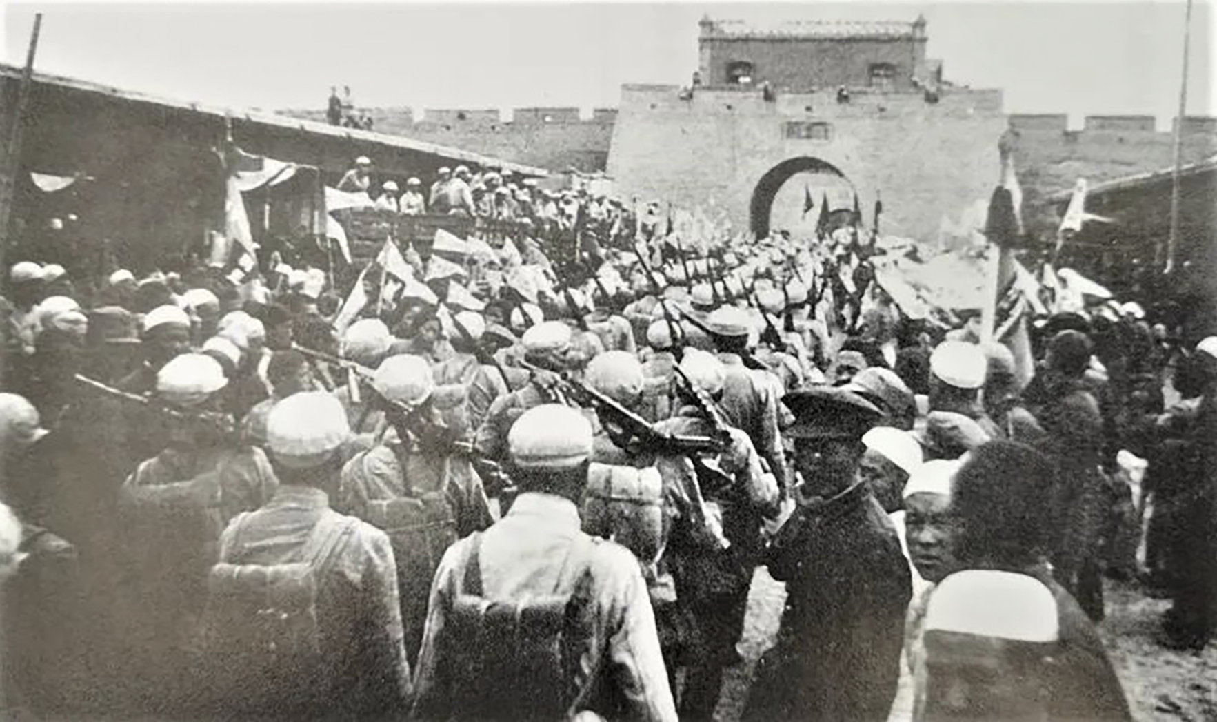 1949年9月26日,人民群眾歡迎解放軍十九兵團(tuán)進(jìn)入銀川市區(qū)?!≠Y料圖片