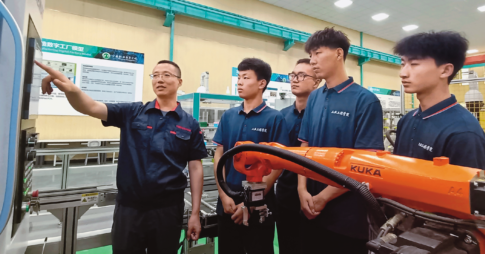 寧夏職業(yè)技術(shù)學(xué)院工業(yè)工程學(xué)院教師指導(dǎo)學(xué)生在數(shù)控機(jī)床上進(jìn)行編程?!幭穆殬I(yè)技術(shù)學(xué)院(寧夏開放大學(xué))供圖