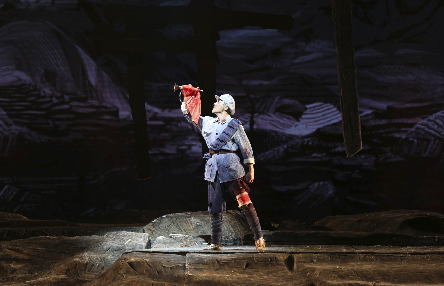 堅定文化自信,努力為人民群眾奉獻高水平的精神食糧。圖為原創(chuàng)音樂劇《花兒與號手》劇照。 自治區(qū)文化和旅游廳供圖