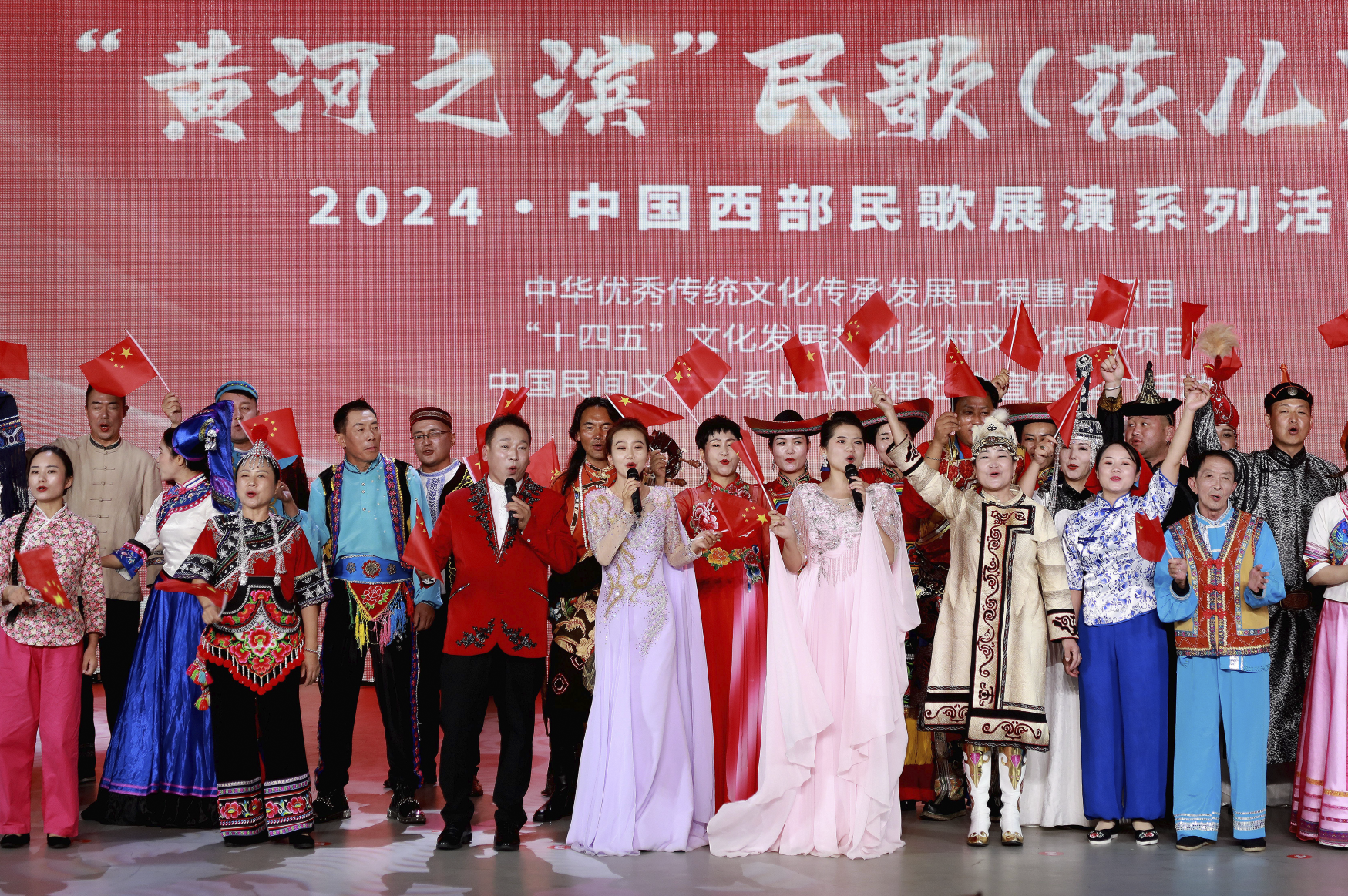 “黃河之濱”民歌(花兒)大會(huì)上,來(lái)自全國(guó)15個(gè)省區(qū)的“花兒”非遺傳承人演唱經(jīng)典“花兒”,為觀眾呈現(xiàn)了一場(chǎng)震撼心靈的民歌盛宴。 自治區(qū)文聯(lián)供圖