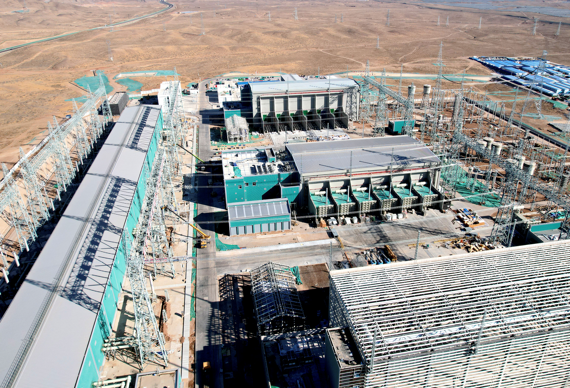 “寧電入湘”±800千伏特高壓直流輸電工程中寧換流站建設(shè)現(xiàn)場。? 自治區(qū)發(fā)展改革委供圖