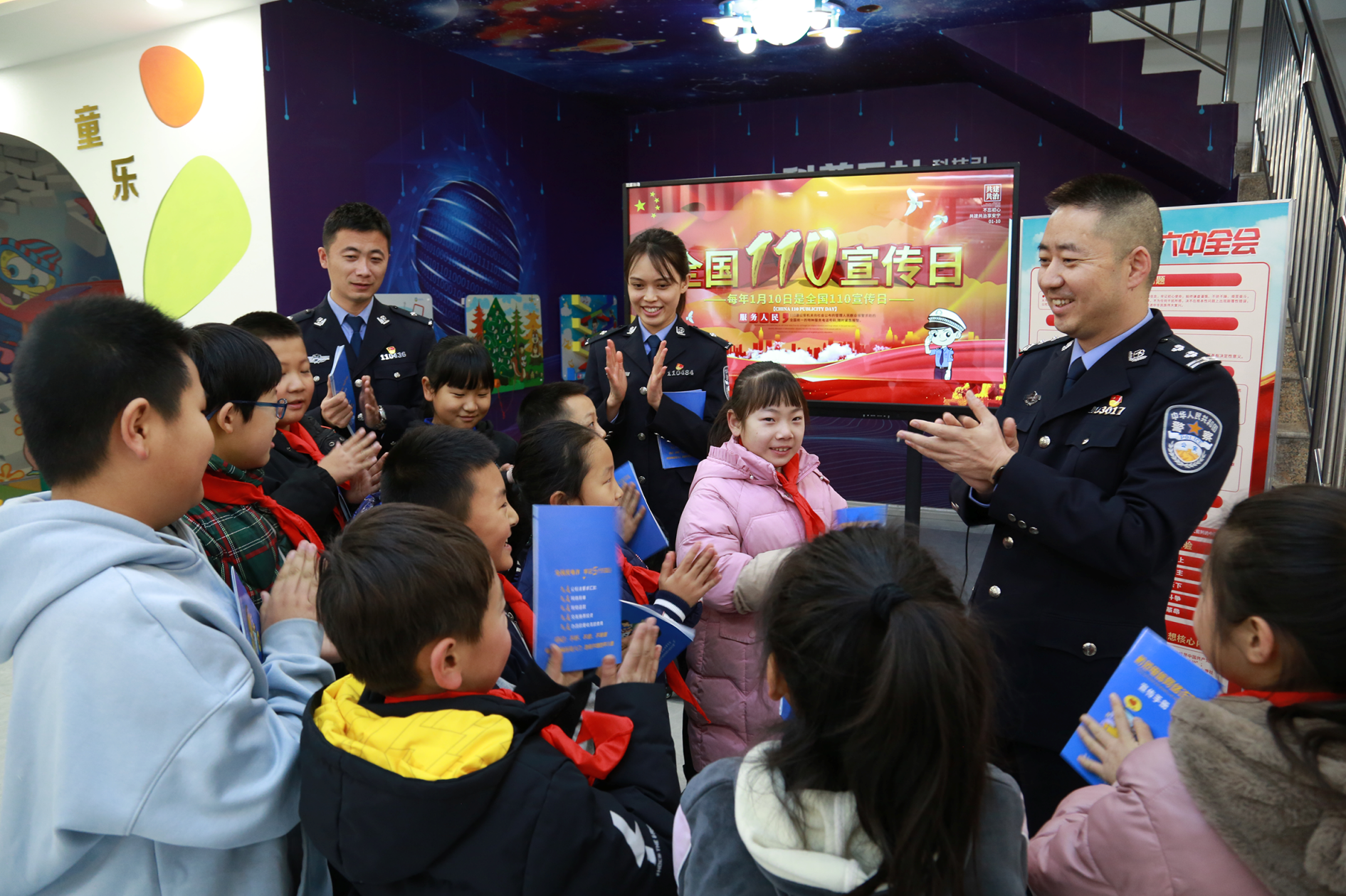 銀川市公安局興慶分局玉皇閣北街派出所民警為小學(xué)生講授安全知識。 自治區(qū)公安廳供圖