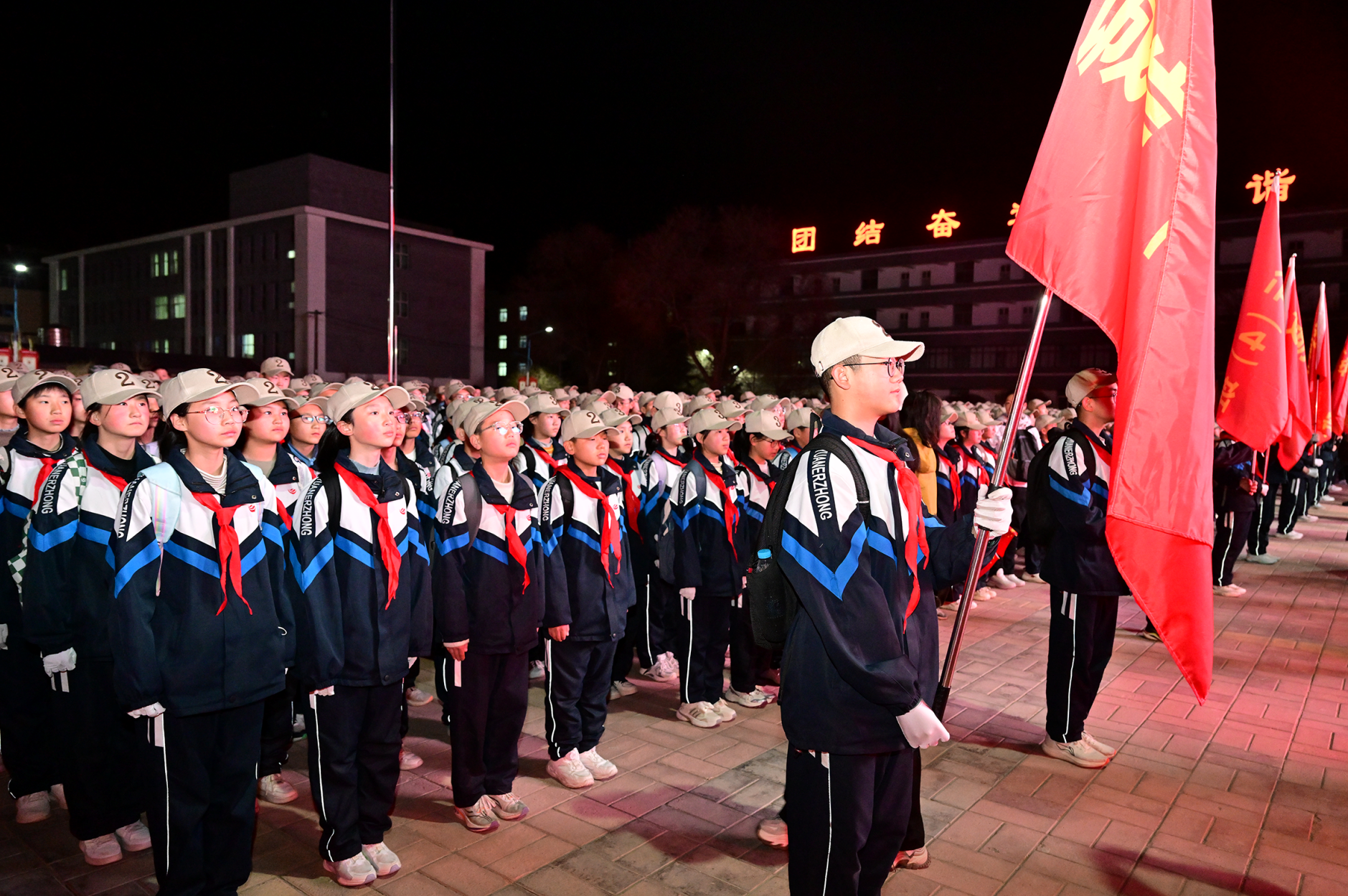 2025年4月3日凌晨,固原弘文中學(xué)學(xué)生在操場(chǎng)列隊(duì),準(zhǔn)備出發(fā)。 閆院平/攝