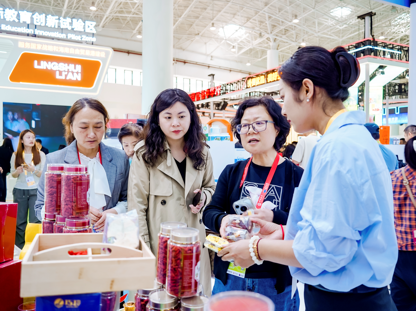 在健康消費(fèi)浪潮席卷全球的當(dāng)下,消博會(huì)寧夏展館內(nèi)那一抹躍動(dòng)的“中國紅”格外吸睛。展臺上凍干鎖鮮枸杞和枸杞原漿成為觀眾爭相品鑒的焦點(diǎn)。在4月17日的觀眾開放日,不到半天的時(shí)間,百瑞源枸杞股份有限公司帶來的產(chǎn)品就被搶購一空。林女士是海南人,知道寧夏的中寧枸杞享譽(yù)全國,專門找到寧夏展館購買,她笑著說:“這次的機(jī)會(huì)好啊,在家門口就能買到正宗的中寧枸杞,賺到啦!”