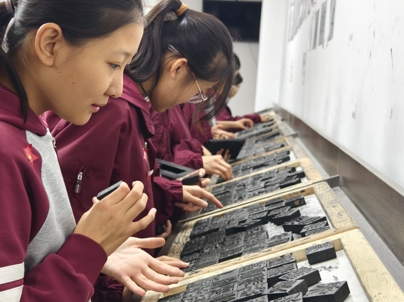 青少年學(xué)生體驗(yàn)西夏文木活字印刷。