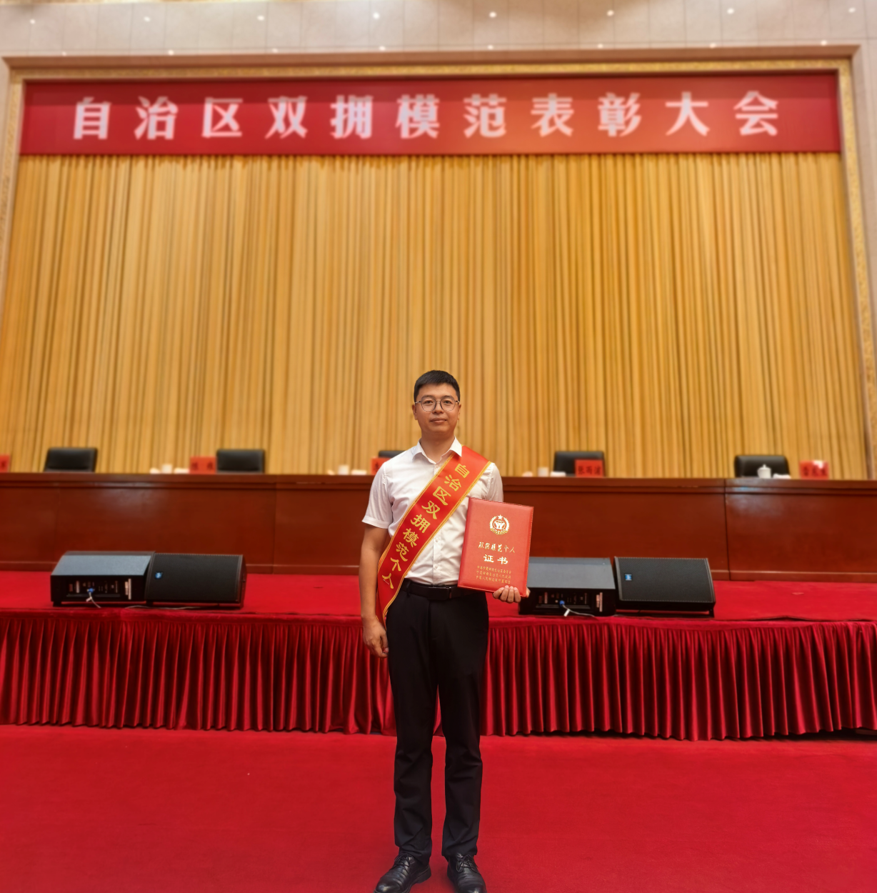 張虎在自治區(qū)雙擁模范表彰大會(huì)現(xiàn)場(chǎng)留影?!∈茉L者供圖