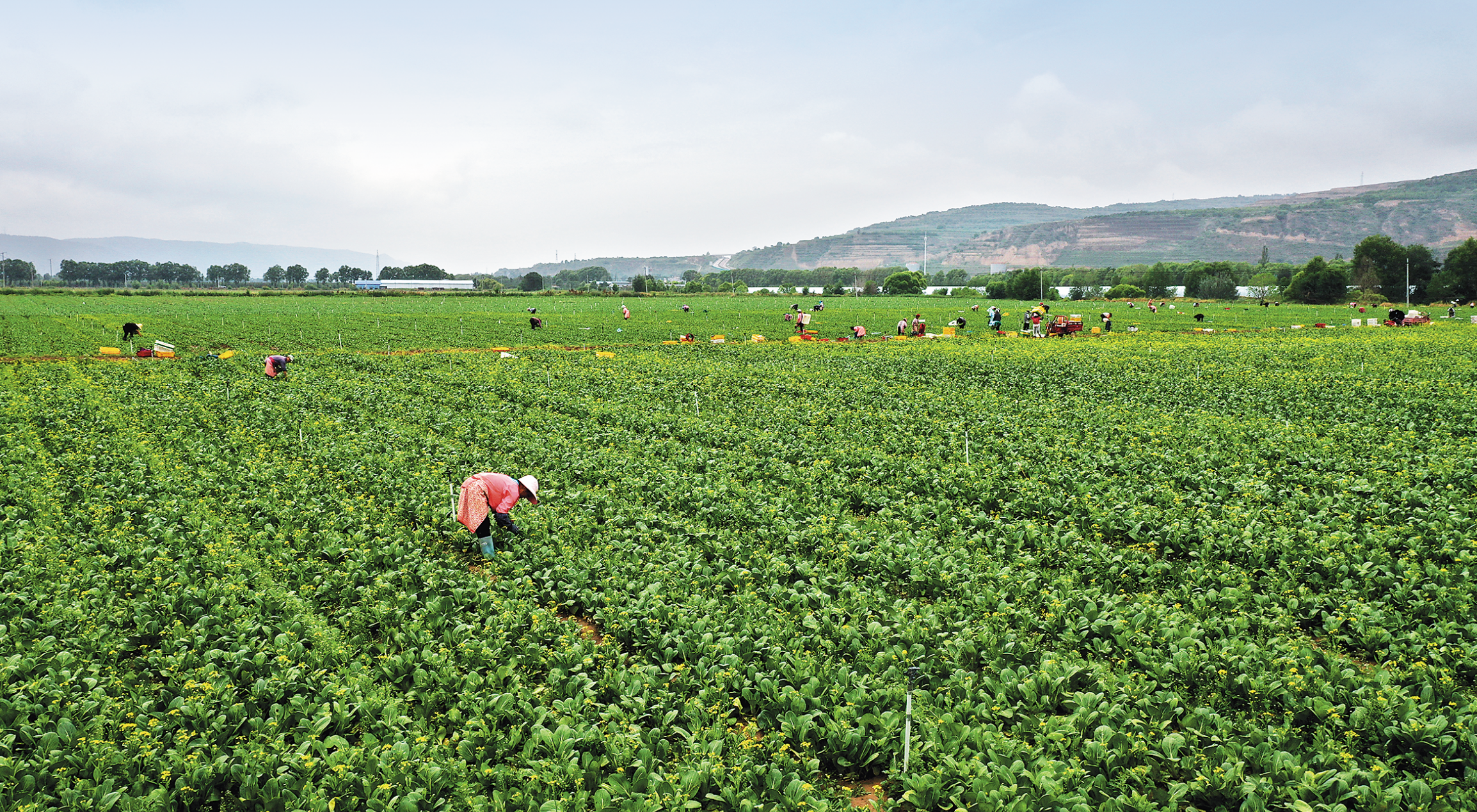 隆德縣沙塘鎮(zhèn)十八里村的蔬菜豐收了,農(nóng)民在田間忙著采摘。 梁園/攝
