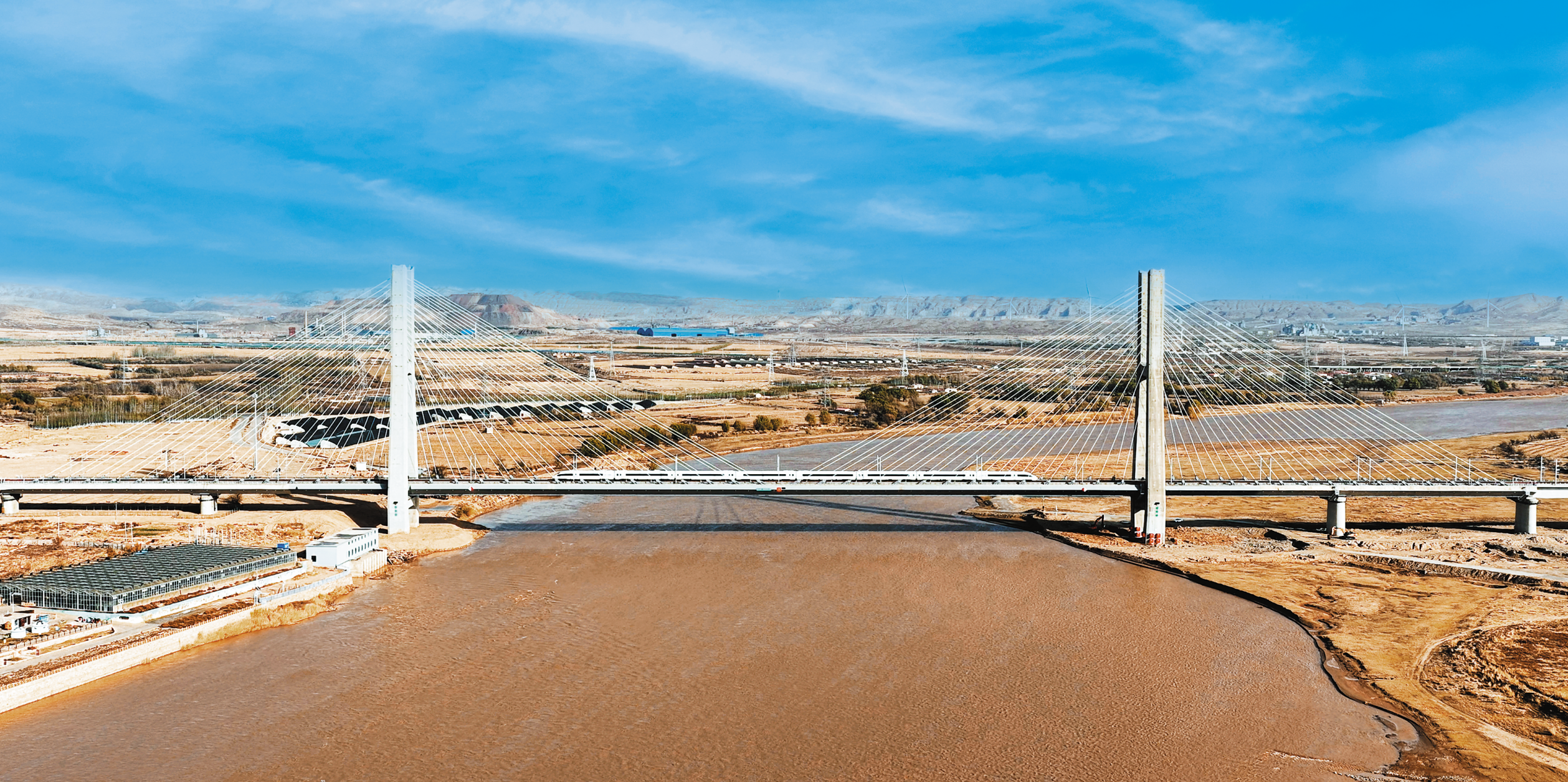 包銀高鐵首發(fā)列車經(jīng)內(nèi)蒙古烏海黃河特大橋,向著銀川方向疾馳。 宋佳龍/攝