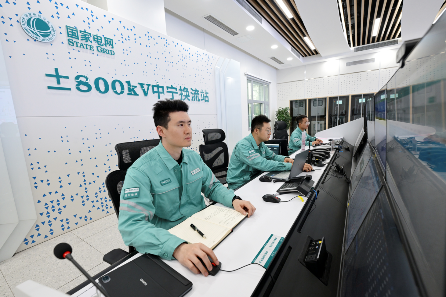 在國(guó)家電網(wǎng)有限公司寧夏至湖南±800千伏特高壓直流輸電工程中寧換流站主控室內(nèi),工作人員正密切監(jiān)控設(shè)備的運(yùn)行狀態(tài)。 袁宏彥/攝