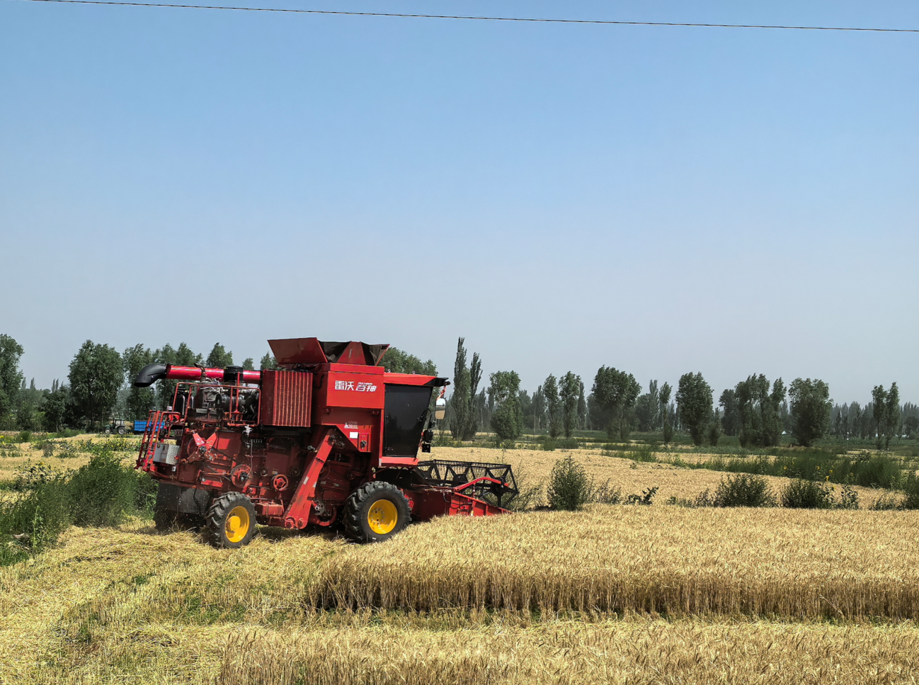 2025年,寧夏主要糧食作物喜獲豐收。圖為中寧縣新堡鎮(zhèn)南灣村小麥種植基地收割現(xiàn)場。 自治區(qū)農(nóng)業(yè)農(nóng)村廳供圖