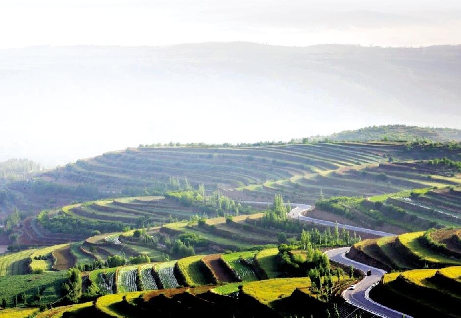 晨曦中的彭陽梯田