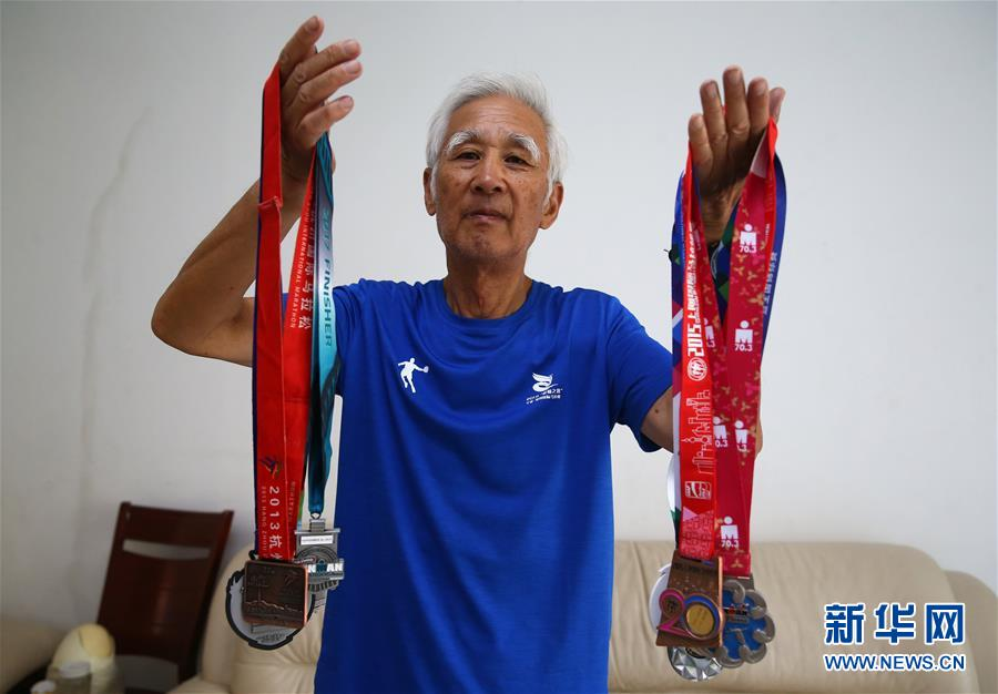 有了馬拉松這塊“敲門(mén)磚”,顧大我逐漸開(kāi)始接觸鐵人三項(xiàng)運(yùn)動(dòng),游泳和騎行也加入到他的日常訓(xùn)練中。2017年,顧大我只身一人來(lái)到美國(guó)田納西州,參加了包括游泳3.8公里、騎行180公里、跑步42.195公里的“超級(jí)鐵人三項(xiàng)”比賽,當(dāng)時(shí)已年過(guò)古稀的顧大我以16小時(shí)7分16秒的成績(jī)完賽,并取得70至74歲年齡組第四名的成績(jī)。