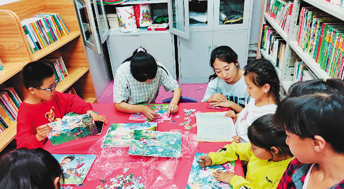 青年志愿者在社區(qū)開展志愿服務(wù)活動,陪伴留守兒童。